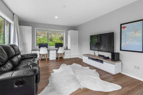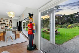 Built with sustainability in mind, the property boasts low-E glazing with the verandas positioned to maximize natural sunlight flowing into the home. Mature plantings provide privacy and a sense of established charm, while a wide variety of fruit trees and a lush feijoa hedge add to the lifestyle appeal. Outdoors, you'll find a golf hole, a feature pond, and a harmonious blend of native bush and lawn areas that create a true sanctuary.