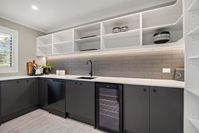 At the heart of the home, the expansive open-plan kitchen showcases high-end appliances and a fully fitted butler's pantry complete with a wine fridge and drinks cooler. Flowing effortlessly to the dining and formal lounge zones, this space is perfectly configured for grand entertaining or relaxed everyday living. A covered north-facing alfresco area extends the living outdoors, capturing all-day sun and creating an inviting setting for year-round gatherings.