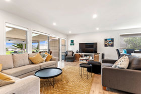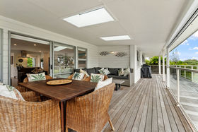 The home extends to a north-west facing deck, where you can watch the Omaha sunset dip behind the estuary and the neighbouring golf course.